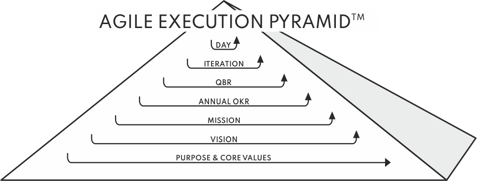 Agile Execution builds on the foundation of human talent and motivation: fostering self-management with coaching oriented servant leadership and inspection and adaptation in different, gradually decreasing time-boxes. Objectives and Key Resultr or OKRs provide strategic alignement to employees of all levels.