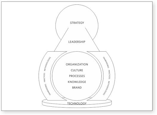This framework is integrative and holistic. It is integrative because it combines many disciplines and theories in one comprehensible and practical unit, ready to be applied in practice in a relatively short time. It is holistic, because it entwines the entire organization, not just parts of it. This framework is made to drive fundamental change in organizations.